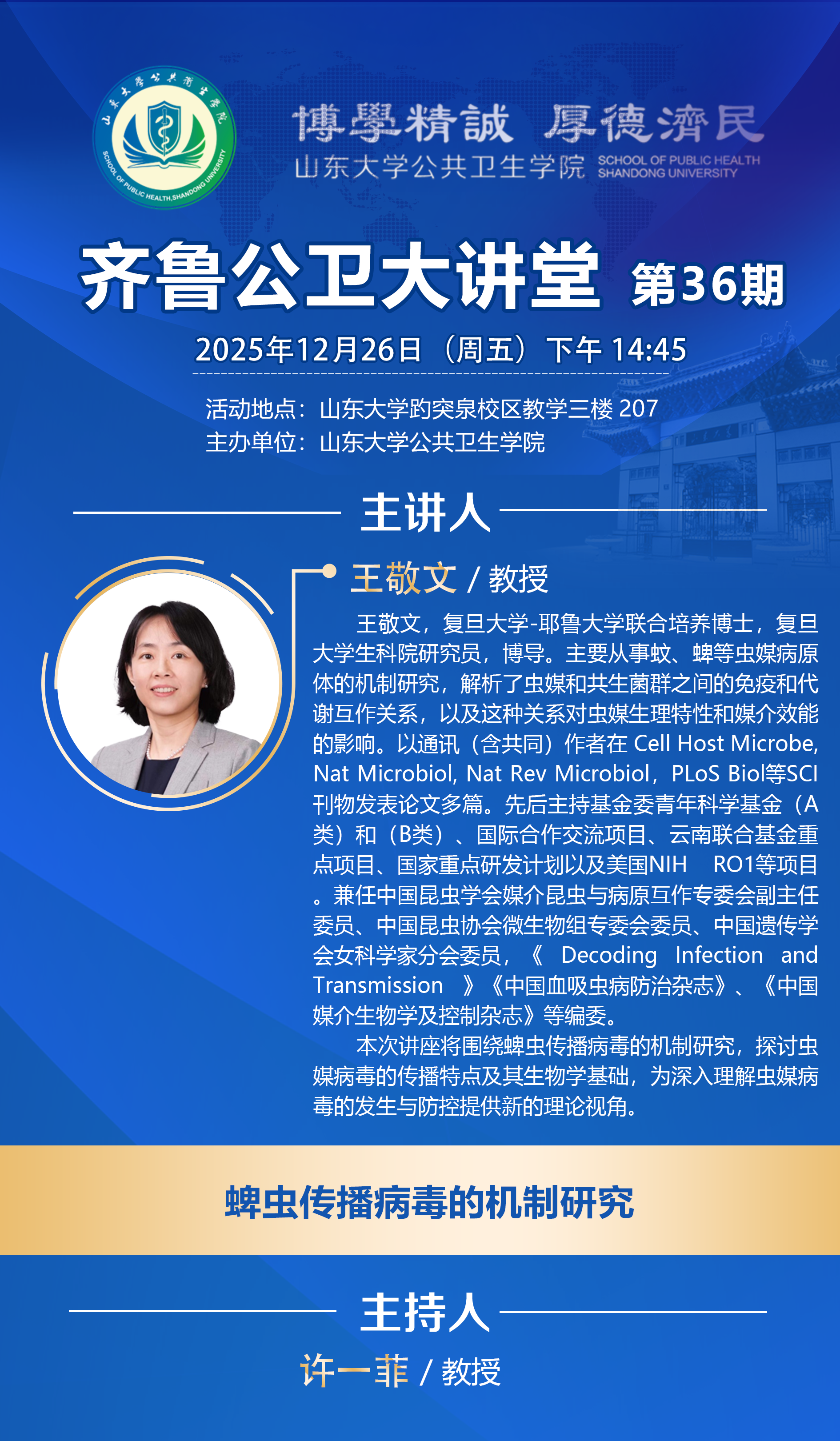 齐鲁公卫大讲堂第36期——蜱虫传播病毒的机制研究