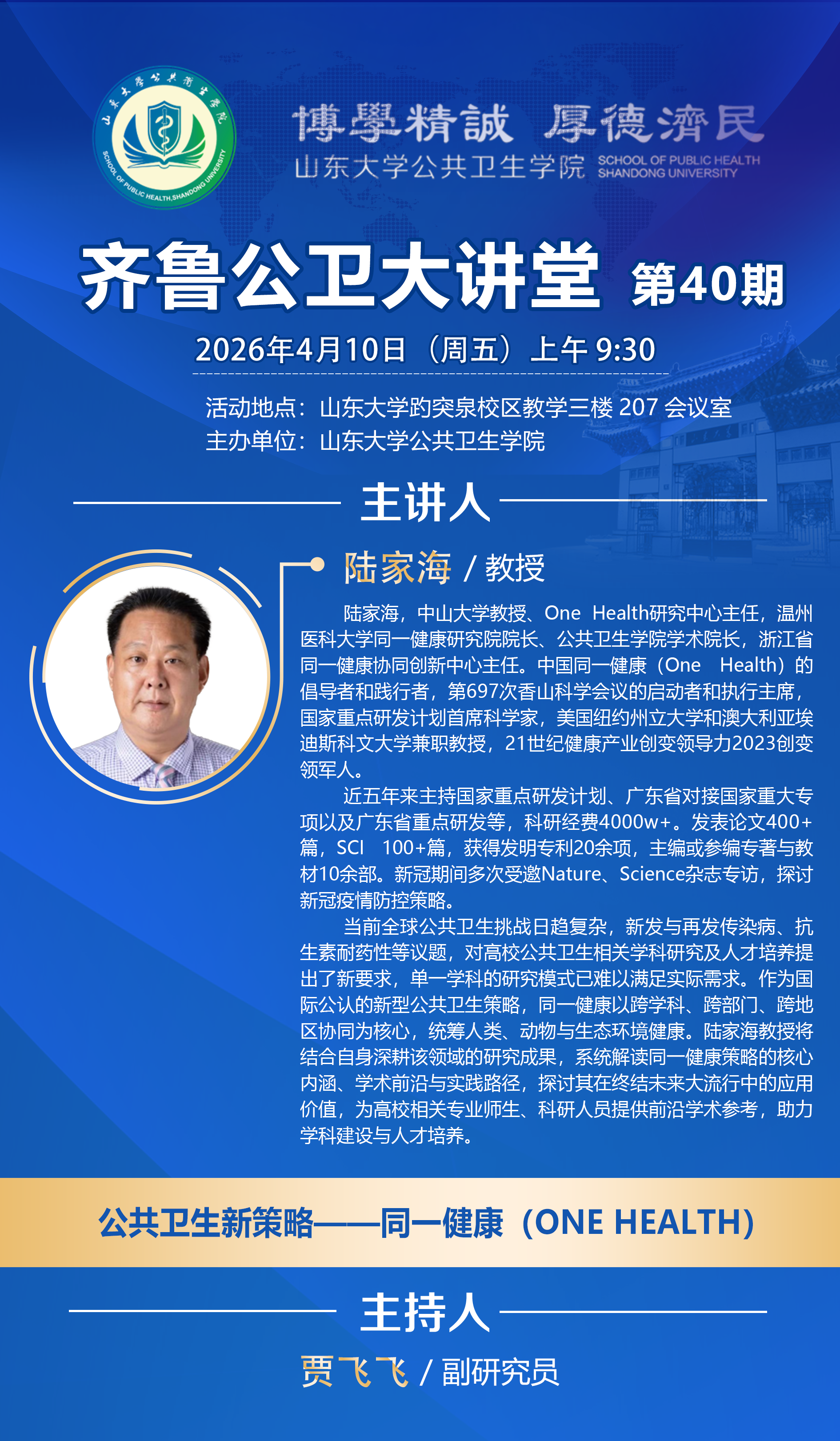 齐鲁公卫大讲堂第40期——公共卫生新策略:同一健康(ONE HEALTH)