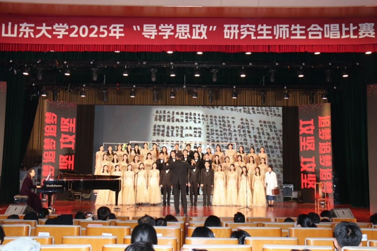 10月26日,山东大学2025年“导学思政”研究生师生合唱比赛在中心校区音乐厅圆满落幕。公共卫生学院研究生师生合唱团以《落叶归根》为参赛曲目,荣获本次比赛三等奖。