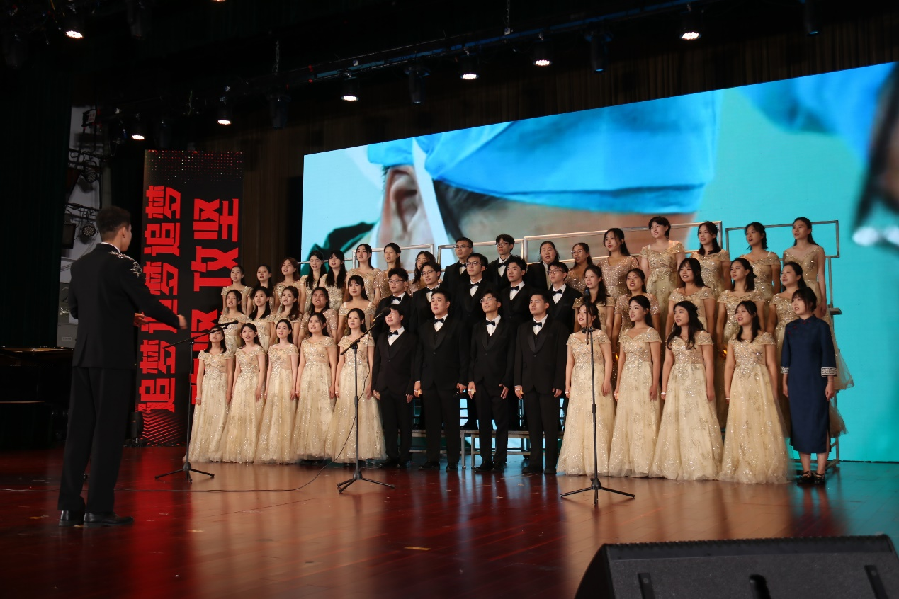 比赛当日,伴随钢琴声起,我院合唱团成员们默契的声部配合将歌曲的情感层次徐徐铺展。在程媛媛老师的钢琴伴奏和多位研究生导师、辅导员老师的共同参与下,整场演出的艺术表现力丰富立体。歌声承载家国情怀,彰显初心坚守,展现了公卫师生传承红色血脉、践行时代使命的昂扬风貌,深刻诠释了学院“立学为公,卫戍健康”的办院宗旨。