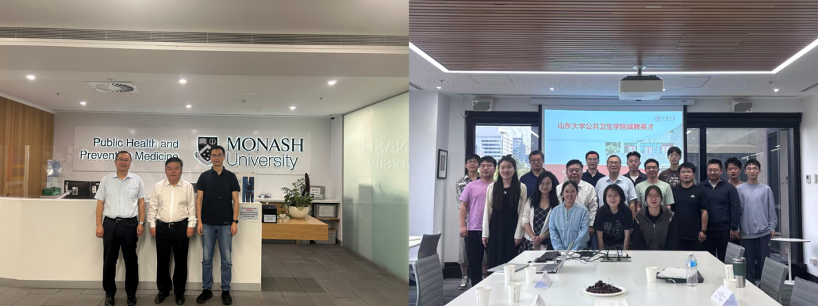 代表团随后访问了位于墨尔本的蒙纳什大学公共卫生学院,围绕山东大学及公共卫生学院招聘政策、学术平台及学术成果等,与留学生们开展交流活动。随后与蒙纳什大学公共卫生学院郭玉明教授、张磊教授在人才培养及科研合作达成共识。