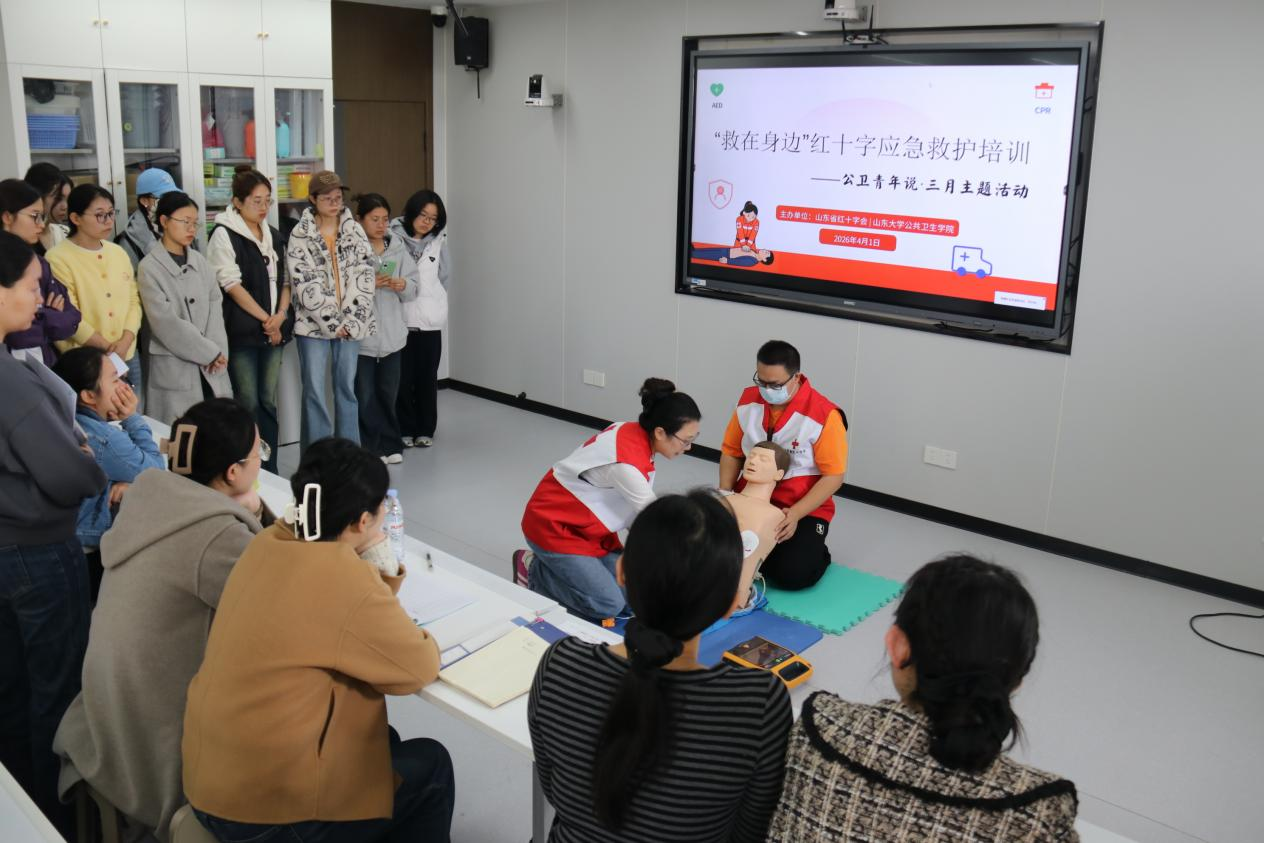 近日,为深入贯彻落实“健康中国”战略,进一步提升公共卫生人才培养质量,增强青年学生服务社会、守护生命的责任意识与实践能力,公共卫生学院联合山东省红十字会在趵突泉校区组织开展两期“救在身边”红十字应急救护培训活动。