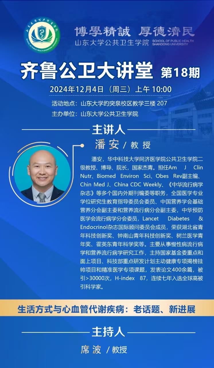 齐鲁公卫大讲堂第18期——生活方式与心血管代谢疾病:老话题、新进展
