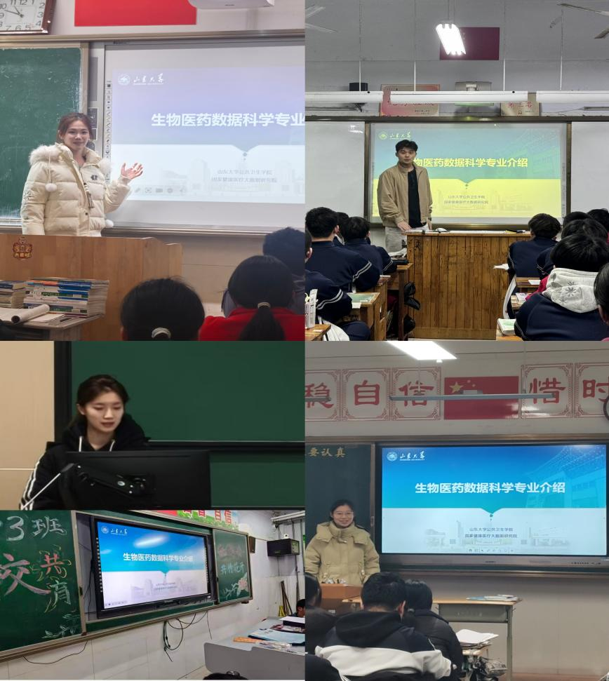 2026年寒假期间,山东大学公共卫生学院积极落实学校招生拓展工作要求,组织生物医药数据科学专业2024级本科生冯若函、李佩瑶、沙世航、孙加月、孙景洲、孙颀宸、王思予、杨雯蓓八位优秀学子,分赴各自高中母校开展招生宣讲活动。