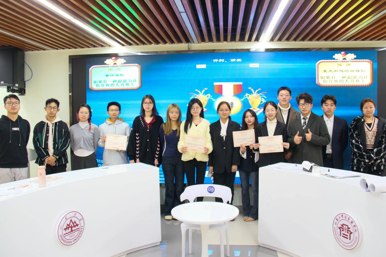 本场比赛由高亦慈、高霖、郑伊灵担任评委,学术部单良担任主席。正方“蛋仔派”队和反方“夏天和他的姐妹”队就“如果有一种超能力使用了就可以让你喜欢的人喜欢上你,你会使用/不使用”这一辩题展开激烈的辩论。