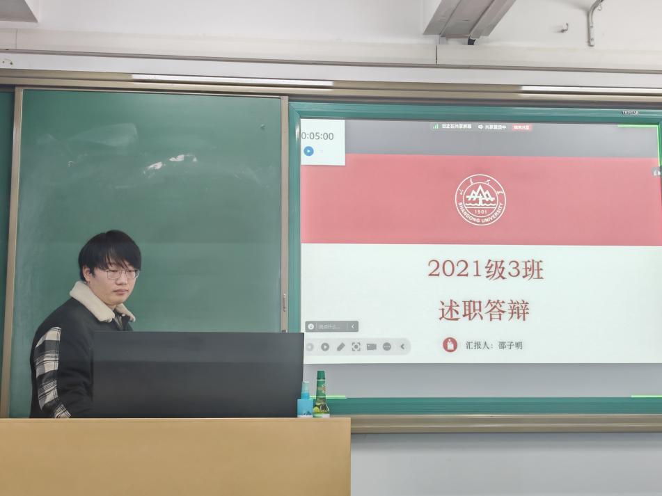 2021级预防医学3班班长邵子明介绍了班级积极开展多种团日活动,加强思想建设;学习氛围良好,获奖学金众多,金额可观。班级中多人参与各类创新大赛,取得显著成果。班中同学在学生组织任职,参与多项实践活动,获多项荣誉,成果被广泛报道。